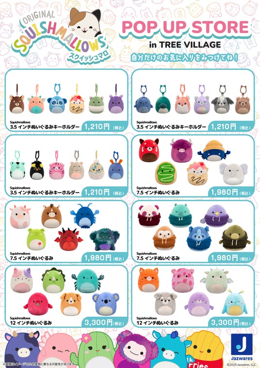 世界中で大人気のぬいぐるみ 「Squishmallows(スクイッシュマロ)」のPOP UP STOREがツリービレッジ全国4店舗にて開催決定!