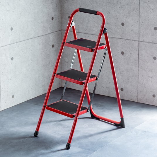 従来のホワイトとブラックに加え、鮮やかなレッドが仲間入りしました。空間のアクセントになるカラーで、用途やインテリアに合わせて選べる楽しさが広がります。家庭でもオフィスでも、機能とデザインを両立した脚立として活躍します。