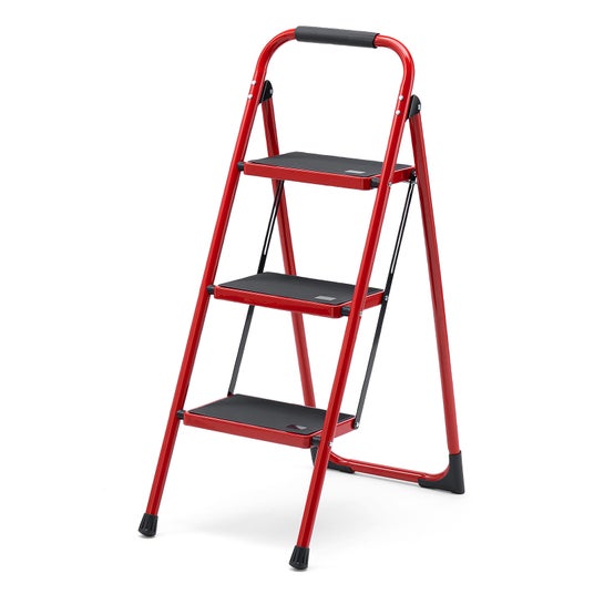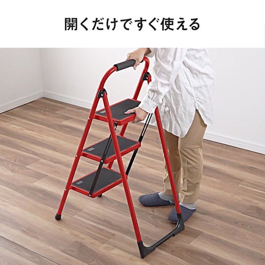 脚立 踏み台 折りたたみ 滑り止め付き 持ち手付き 手すり付き 3段 レッド