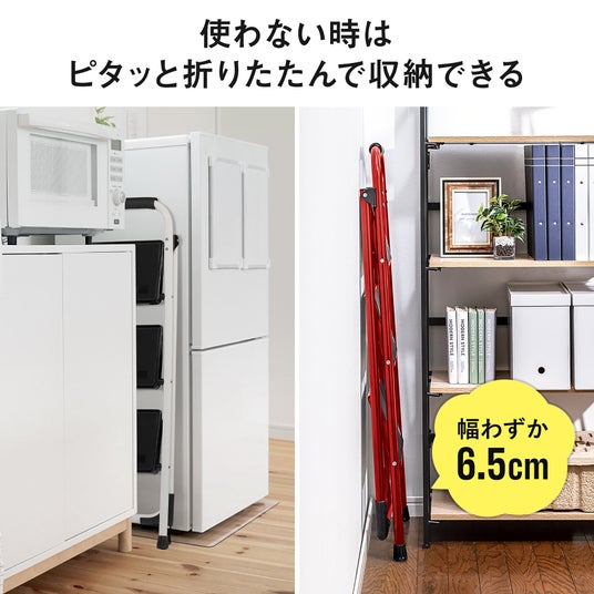 隙間収納できるスリムな折りたたみ脚立、新色レッドを9月4日に追加発売