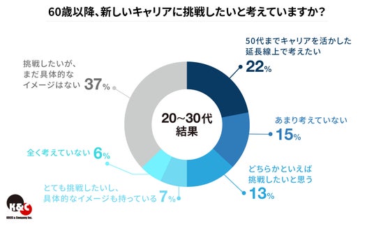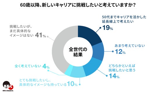 アンケート結果では、60歳以降のキャリアで「挑戦をしたい」と考えている割合は全体で6割以上、40代以上では83%となりました。また、20~30代と40代以上での意識が違う傾向も見られました。