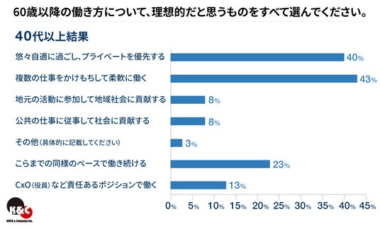 60歳以降の理想の働き方としては「複数掛け持ち」「CxO」「公共支援」などが多い傾向
