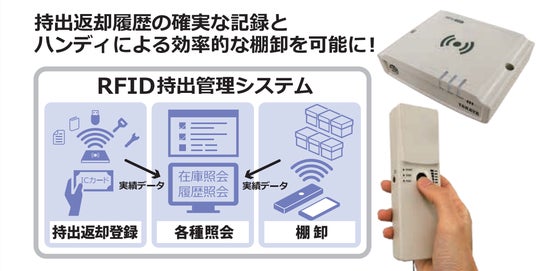 ICタグを活用した持出管理システムです。持出・返却履歴を確実に記録し、台帳への記入漏れや記入ミスを防止するとともに、返却忘れや紛失の早期発見をサポート。さらにRFIDハンディによる一括読み取りで効率的な棚卸を可能にします。