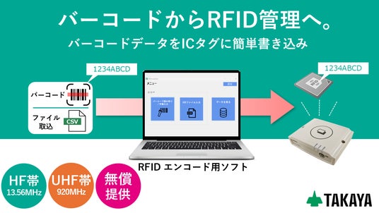 バーコードデータやキーボード入力した情報をRFタグに簡単にエンコード(書き込み)できるソフトウェアです。CSVファイルを取り込むことで、大量のデータを効率的にエンコードすることも可能です。