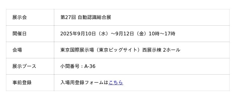 タカヤ株式会社(本社:岡山県井原市井原町、代表取締役社長:岡本 龍二)は、2025 年9月10日(水)~9月 12日(金)に東京ビッグサイトで開催される「第 27回 自動認識総合展 」に出展いたします。
