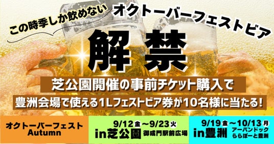同時期開催の芝公園会場のチケットを買うと、オクトーバーフェストビア1Lが当たるキャンペーンも実施中!