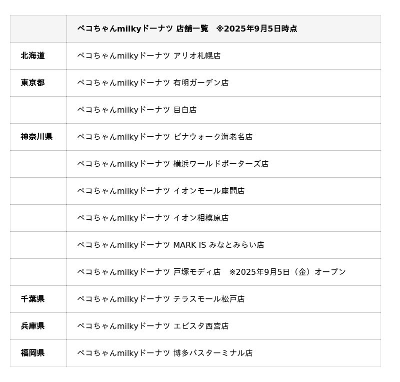 店舗の詳細は「ペコちゃんmilkyドーナツ 特集ページ」よりご確認ください。