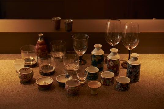 こだわりの酒器: 彩り豊かな九谷焼の器が料理と日本酒をさらに引き立て、特別なひとときを演出します。