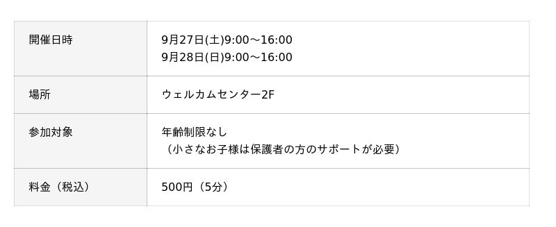 専門スタッフがご対応しますので、初めての方も楽しく体験できます。ぜひブースへお越しください。