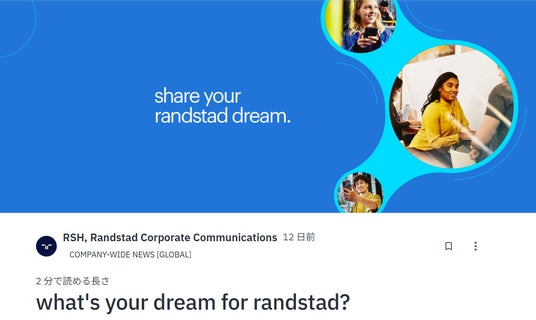 Randstad Dream: 5年後に70周年を迎えるランスタッドへの夢(DREAM)をイントラネットで共有する取り組みです。