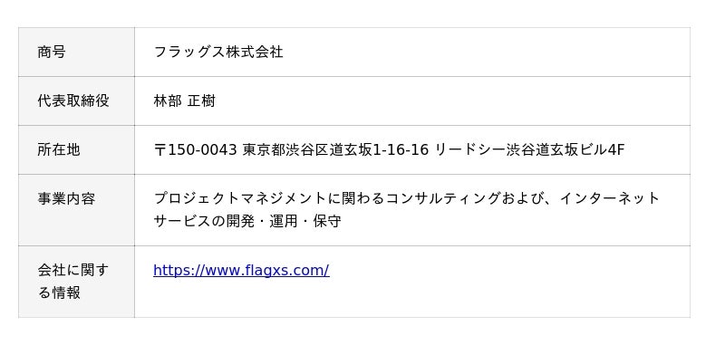 「テクノロジーを通じたイノベーションで社会と人々の働き方をもっと幸せにする」をミッションに、プロジェクト/事業の生産性向上を支援するクラウド型プロジェクトマネジメントDX プラットフォーム「Flagxs(フラッグス)」を展開。また、プロジェクト推進コンサルティング支援やFlagxs導入定着支援、人材育成支援なども提供しています。これらを通じ、プロジェクト/事業の生産性向上と、データドリブンなプロジェクト推進環境の実現を支援しています。