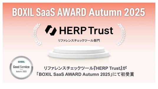 『HERP Trust』が「BOXIL SaaS AWARD Autumn 2025」リファレンスチェックサービス部門にて「Good Service」を初受賞