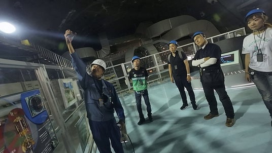 ツーリングの終着点である上野村に到着後、一行はバイクからバスに乗り換え、今回の目的地である神流川発電所へ。地表から約500mの地下に広がる、まるでSF映画のような巨大空間に圧倒されながら、世界最大級の揚水式発電の仕組みを学び、発電設備を間近で見学するという貴重な体験となりました。