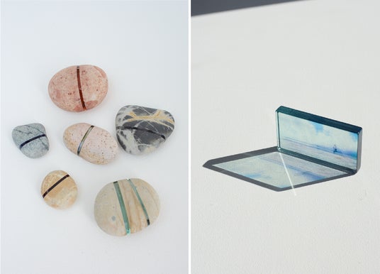 「個々の美意識や価値観はどこから生まれたのか」をテーマに、ガラスと異素材を組み合わせたオブジェを制作。