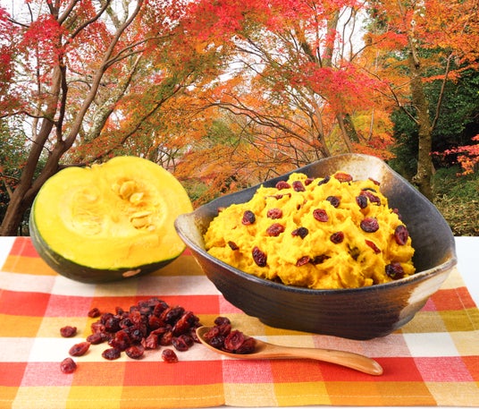 ほんのり甘いかぼちゃとクリームチーズを使用した特製ソースで和えた、スイーツ感覚で食べられるクリーミーなサラダです。甘酸っぱいドライクランベリーがアクセントで、秋の定番の一品をより美味しくアレンジしました。