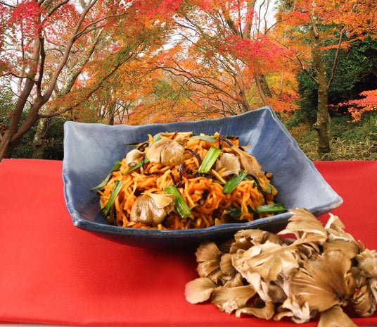 コリコリした食感が楽しい切り干し大根に、舞茸とニラ、塩昆布を加えてキムチソースで和えました。辛味と旨みが合わさってやみつきになる一品です。