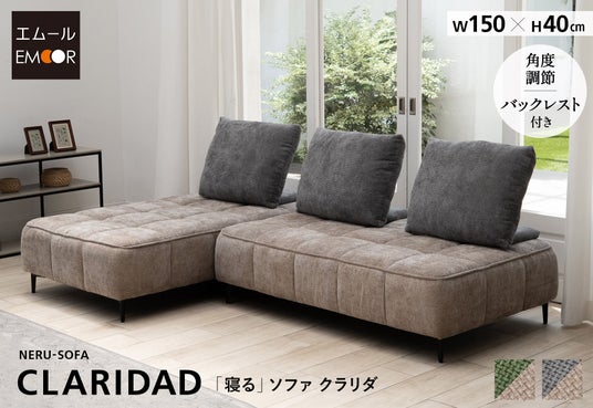 「寝る・座る」を両立した新発想ソファシリーズ『NERU-SOFA』は、従来のソファの長所であるリビングの顔としてのデザインは大切にしつつ、いかに心地よく休めるか?にフォーカスして生まれました。本商品クラリダは、寝心地・座り心地に関する専門的な研究開発を行う健康家具ブランドEMOORが、徹底的にこだわって開発した“心地よく休むためのソファ”です。上質な座面構造と角度が調節できるバックレストで寛ぎの姿勢を自由にアレンジできます。