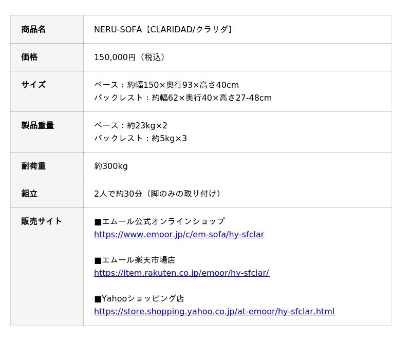 「寝る、座る、たたむ」に専門性を持った健康家具ブランドEMOORを展開する株式会社エムール(東京都立川市:代表取締役 高橋 幸司)は、2025年9月3日より、“心地よく休むためのソファ”『CLARIDAD クラリダ』(以下、『クラリダ』)の販売を開始しました。