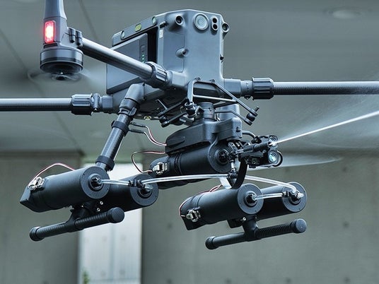 東洋製罐株式会社から誕生した「SABOT-3」は、DJIの産業用ドローンプラットフォーム Matrice 400/350 RTK に加工なしで取り付け可能なスプレー缶噴射装置です。従来のドローンが補修箇所の「点検」までにとどまっていたのに対し、SABOT-3ではその場での簡易補修までを実施可能にしました。これにより、高所構造物における補修コスト削減、安全な応急処置、作業効率の向上が期待されます。