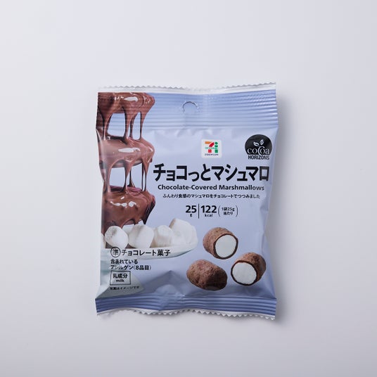 チョコとマシュマロの絶妙な組み合わせが特長の「セブンプレミアム チョコっとマシュマロ」。奥深い濃厚な味わいの準ミルクチョコレートでコーティングされたマシュマロは、ふんわり食感と濃厚な味わいが楽しめます。また、チョコレートとマシュマロを組み合わせることで、食感の楽しさとくどくすぎない味わいを両立しました。