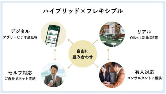 Oliveコンサルティングでは、新たな資産運用サービスとして、Oliveコンサルティングに所属するSMBC日興証券、三井住友銀行のアドバイザーによる有人コンサルティング機能である、「フレキシブルコンサルティング」を来春より提供してまいります。