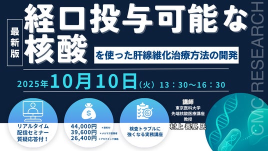 【ライブ配信/ZOOM】「経口投与可能な核酸を使った肝線維化治療方法の開発」セミナー開催!10月10日(金)主催:(株)シーエムシー・リサーチ