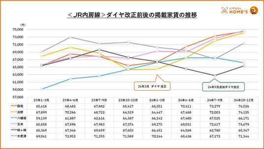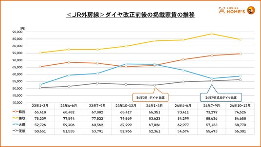 鉄道のダイヤ改正前後の物件の問合せ数と家賃相場の動向をLIFULL HOME'Sが調査