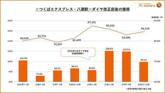 LIFULL HOME'S<つくばエクスプレス・八潮駅>2024年3月ダイヤ改正実施前後の推移