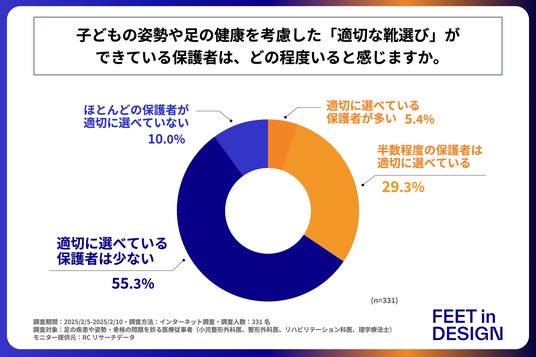 足の疾患や姿勢・骨格の問題を診る医療従事者の65%以上が、子どもの姿勢や足の健康を考慮した「適切な靴選び」ができている保護者は少ないと感じている