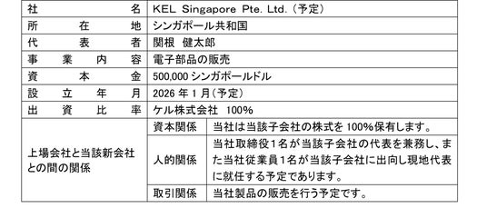 ケル株式会社(本社:東京都多摩市、代表取締役社長:春日 明)は、2025年9月5日開催の取締役会において、シンガポール共和国に海外子会社として、新たに販売拠点を設立することを決議いたしましたので、下記のとおりお知らせいたします。