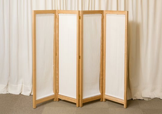 プリスティンの生地を組み合わせた折りたたみの特注パーテーションです。