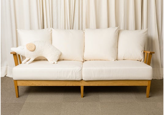 1.北海道・東川町「北の住まい設計社」製 ウッドフレームソファ