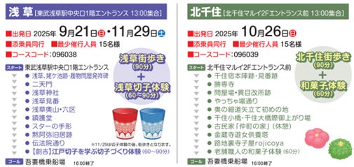 ・オプショナルツアーで、9月と11月は落語家とめぐる「浅草街歩きと浅草切子体験」を、10月は「千住の街歩きと和菓子体験」をお楽しみいただけます。