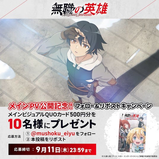 TVアニメ『無職の英雄 ~別にスキルなんか要らなかったんだが~』メインPVと放送情報を解禁!さらに、メインPV公開を記念したQUOカードプレゼントキャンペーンも開催!