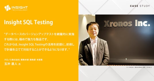 株式会社インサイトテクノロジー(本社所在地:東京都渋谷区、代表取締役社長 CEO:森田 俊哉、以下:インサイトテクノロジー)は、自社開発のSQLテストソフトウェア「Insight SQL Testing」がクロノス株式会社(本社所在地:東京都千代田区、代表取締役社長:大牧 充)に導入され、Amazon Aurora MySQLのバージョン2からバージョン3へのバージョンアップ成功に貢献したことをお知らせします。