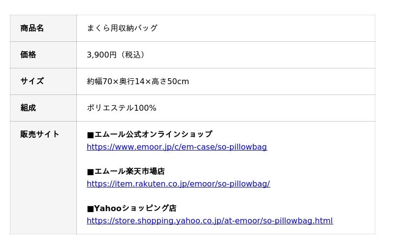 「身体に合った寝る・座る・たたむ」を提供する健康家具ブランドEMOORを展開する株式会社エムール(東京都立川市:代表取締役 高橋 幸司/以下エムール)は、2025年9月5日より、「まくら用収納バッグ」の販売を開始しました。