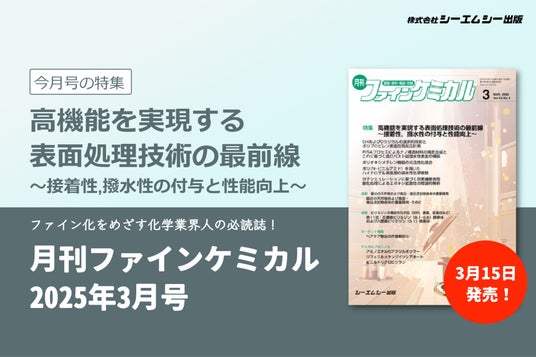 株式会社シーエムシー出版(本社:東京都千代田区神田錦町1-17-1、代表取締役:金森洋平)は、 雑誌『月刊ファインケミカル2025年3月号』(定価:税込7,700円)を、2025年3月15日に発売いたします。 本誌は当社ECサイトおよび全国の書店にてご購入いただけます。