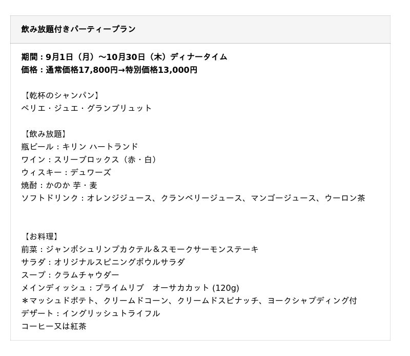 大阪限定、2025年9月1日(月)~10月30日(木)ディナータイム