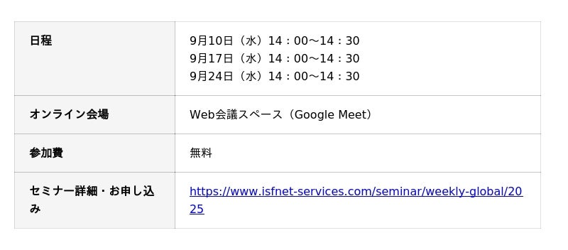 セミナーお申し込みはこちら:https://www.isfnet-services.com/seminar/weekly-global/2025