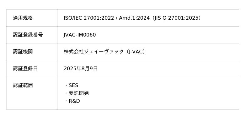 株式会社スカイブルーデジタル(本社:島根県出雲市、代表取締役:石飛 貴彦)は、2025年8月、情報セキュリティマネジメントシステム(ISMS)の国際規格であるISO/IEC 27001:2022認証を取得しました。