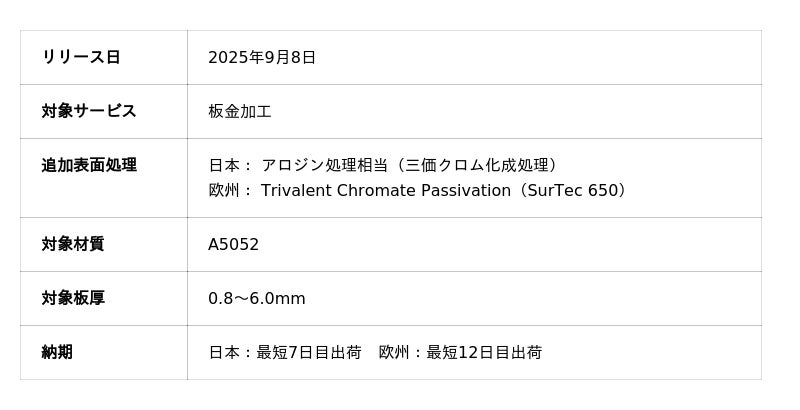 板金加工 日本、欧州向けに「アロジン処理相当」の表面処理対応開始