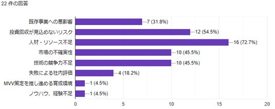 新規事業を開始する際の懸念点として、「人材・リソース不足」と回答した企業は7割以上にのぼり、他の課題と比べても突出していました。