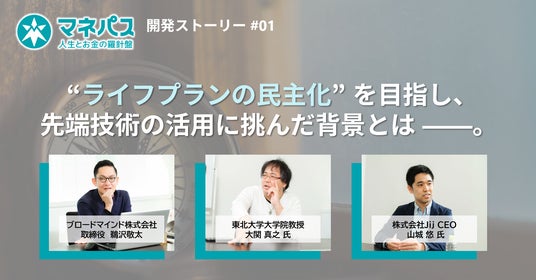 ブロードマインド株式会社「金融の力を解き放つ」をパーパスに掲げ、人々のライフプラン実現をサポートする金融サービス開発カンパニーです。保険・証券・住宅ローンなど幅広い金融商品について無料でFPに相談できる『マネプロ』や、ファイナンシャル・ウェルビーイング(経済的な幸せ)の実現を支援する金融教育プログラム『ブロっこり』など、これまでの金融業界の既成概念に囚われないサービスを開発・提供しています。これからもフィナンシャルパートナーとして“誰のための金融か”を問い続け、「あるべき姿の金融」を社会に実装することを目指してまいります。