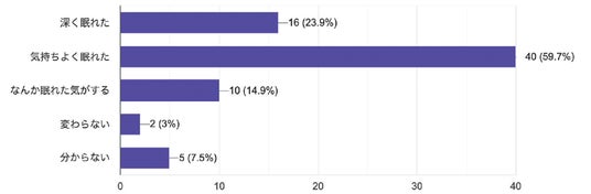 「深く眠れた」(23.9%)、「気持ちよく眠れた」(59.7%)、「なんか眠れた気がす