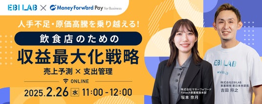 『マネーフォワード ビジネスカード』を飲食店で活用いただくケースが増えています。こうした中、飲食店を経営する方を対象に、人材不足や原価高騰、集客の課題を乗り越え、収益を最大化するためのセミナーを開催します。共催の株式会社EBILABは、150年の歴史を持つ老舗「ゑびや」をDX化と人材育成で再生し、売上を約8倍にした実績を持つ企業です。マネーフォワードとEBILABがタッグを組み、 売上管理と支出管理の両面から、飲食店の収益力強化を支援します。