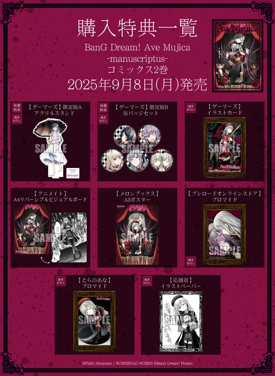 株式会社ブシロード(本社:東京都中野区、代表取締役社長:木谷高明、以下ブシロード)のグループ会社にあたる株式会社ブシロードワークス(本社:東京都中野区、代表取締役社長:新福恭平)は、TVアニメ「BanG Dream! Ave Mujica」のコミカライズ『BanG Dream! Ave Mujica -manuscriptus-』第2巻が本日9月8日(月)に発売したことをご案内いたします。