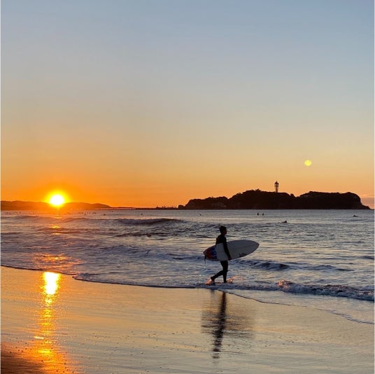 ビーチバレーとサーフィン発祥の地として知られている鵠沼海岸の日の出