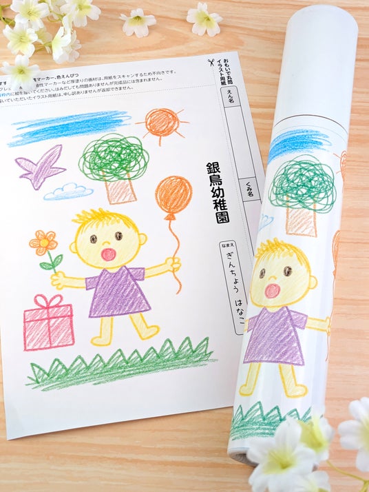そこで私たちは、子どもたちの描いた絵をそのまま残せる丸筒を企画しました。世界にひとつだけの証書入れは、卒園式をより思い出深いものにし、子どもたちの成長を実感できる記念品となります。
