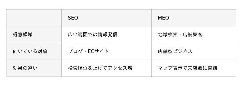 MEOは「検索→来店」までの距離が近い点で、SEO以上の即効性を持っています。