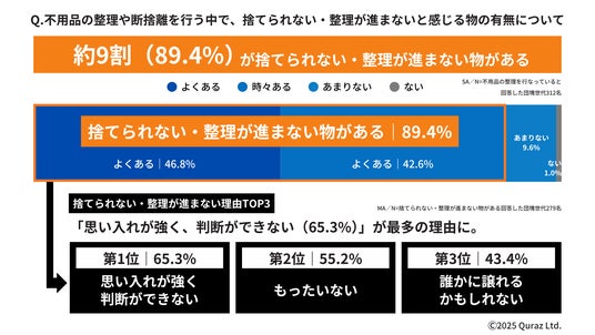 い・整理が進まない」ものがあると回答。理由の上位には、“思い出”や“感情”が整理の障壁